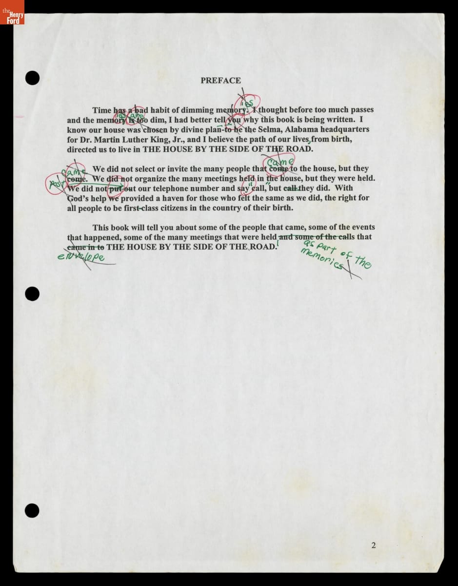 Draft of "The House by the Side of the Road: An Intimate Look at Dr. Martin Luther King, Jr. and the Selma Civil Rights Movement," circa 2007