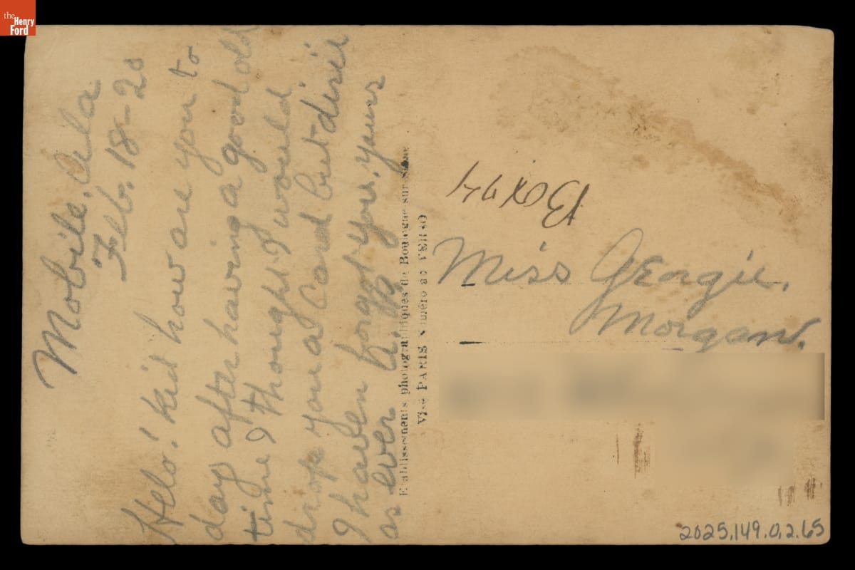 Andrew Purnell Jr. (1898-1975) was born in Selma, Alabama. He joined the all-Black 303rd Stevedore Regiment (with later unit designations) in December 1917. Private Purnell was stationed in Bordeaux, France. He returned to the U.S. in 1919, married, and worked as a railroad freight handler. Like many service members, Purnell kept cards, letters, photographs, and souvenirs from his time in the military.