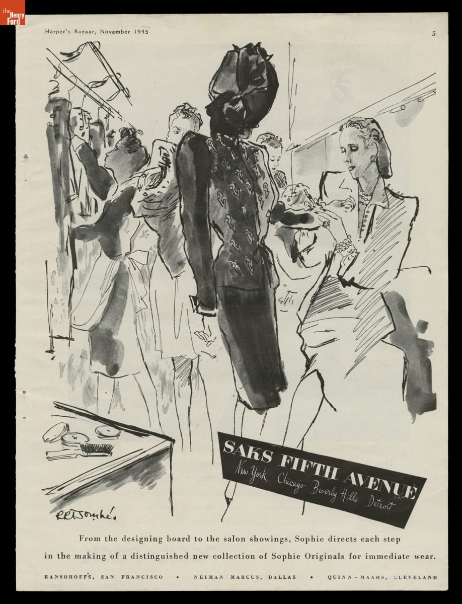 Designs by Sophie Gimbel for Saks Fifth Avenue, Harper's Bazaar, November 1945