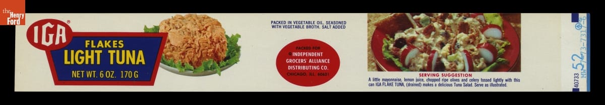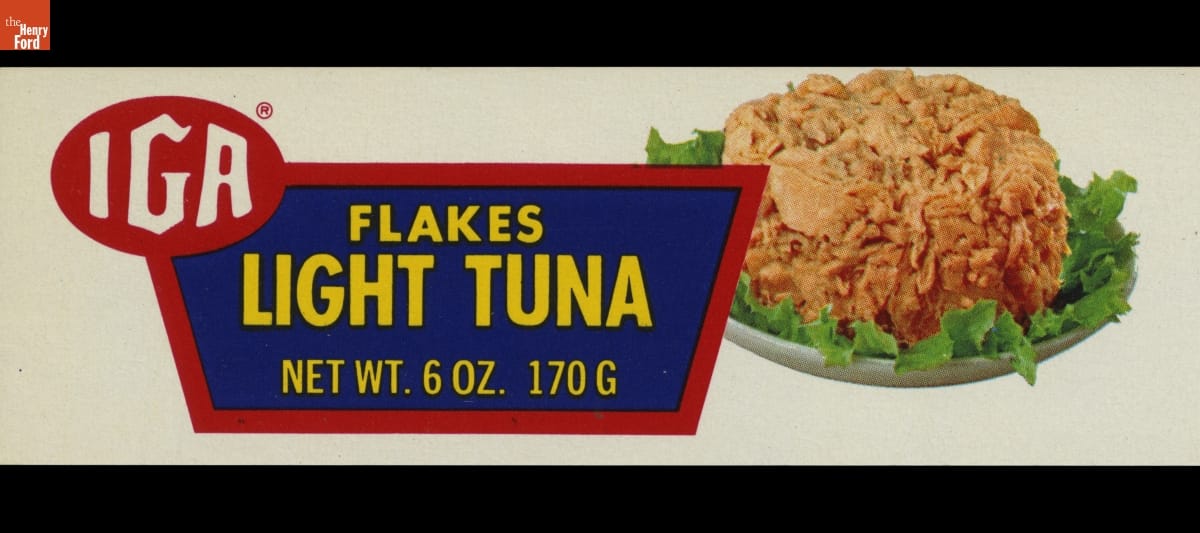 "IGA Flakes Light Tuna" Can Label, 1950-1965