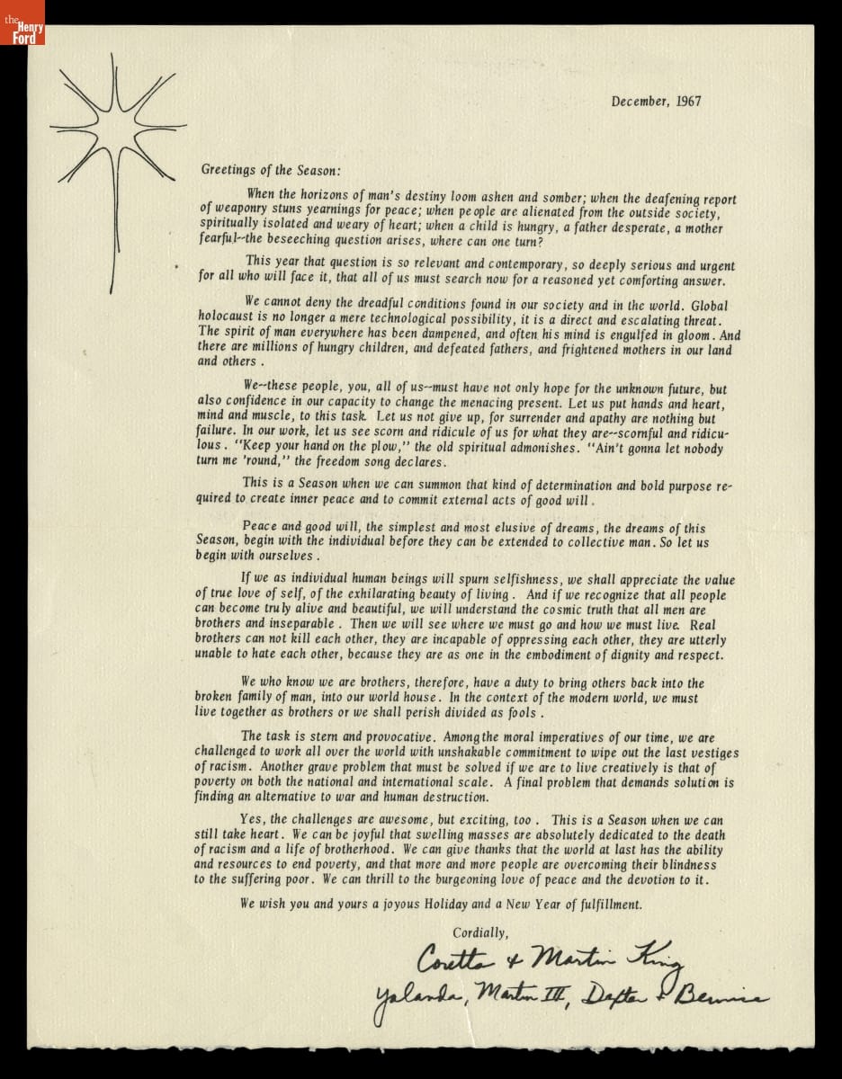 Christmas Letter Sent by Coretta Scott King and Martin Luther King Jr., December 1967