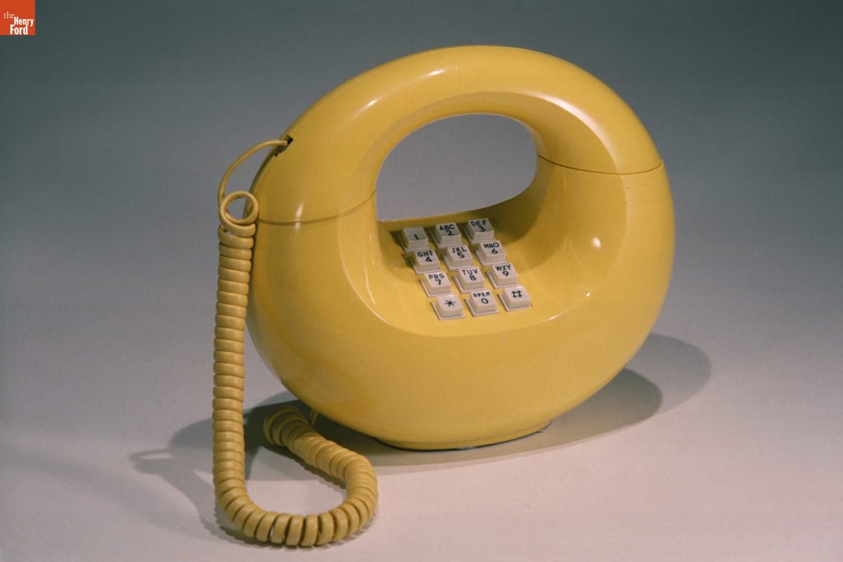 In 1973, AT&T partnered with Henry Dreyfuss & Associates to create a collection of specialty "Design Line" telephones--allowing customers to tailor their technology to fit their home decor. The Sculptura model was designed by Donald Genaro and is a classic example of Pop Art's influence on everyday consumer goods. Eye-catching and playful, it came in white, brown, and yellow.