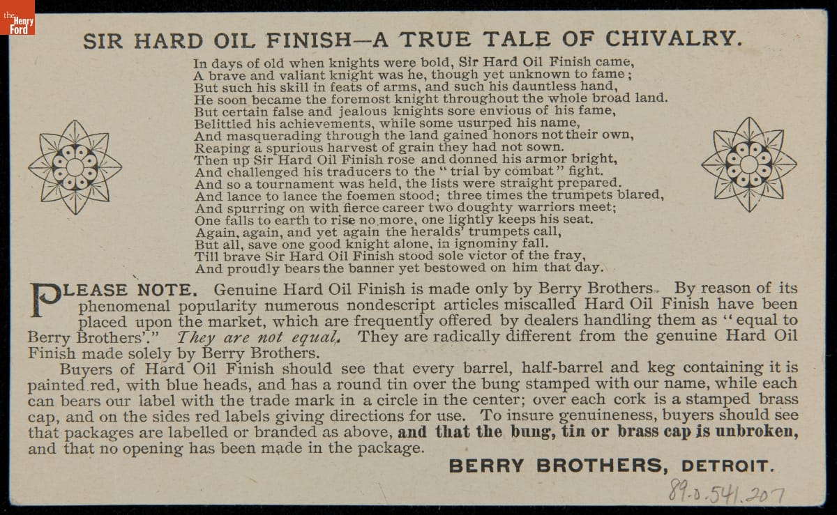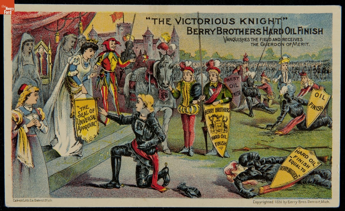 Trade Card for Berry Brothers Hard Oil Finish, "The Victorious Knight," 1891
