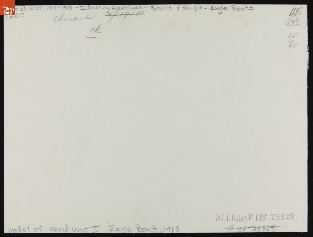 Ford built 60 Eagle anti-submarine patrol boats for the U.S. Navy during World War I. Each boat measured 200 feet long with a beam of 33 feet and a total weight of 615 tons. Top speed was about 18 knots, and cruising range was around 3,500 miles. The typical Eagle's crew included four officers and 54 enlisted sailors.