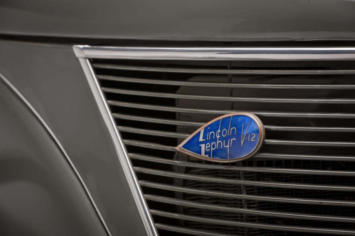 On radiator, in gold letters on blue ribbed enamel: LINCOLN / ZEPHYR V-12