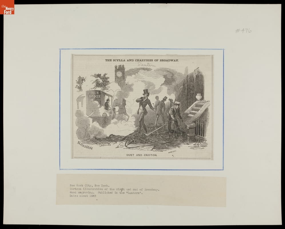 THF204300 / Cartoon, "Scylla and Charybdis of Broadway, Dust and Croton," circa 1848 / detail