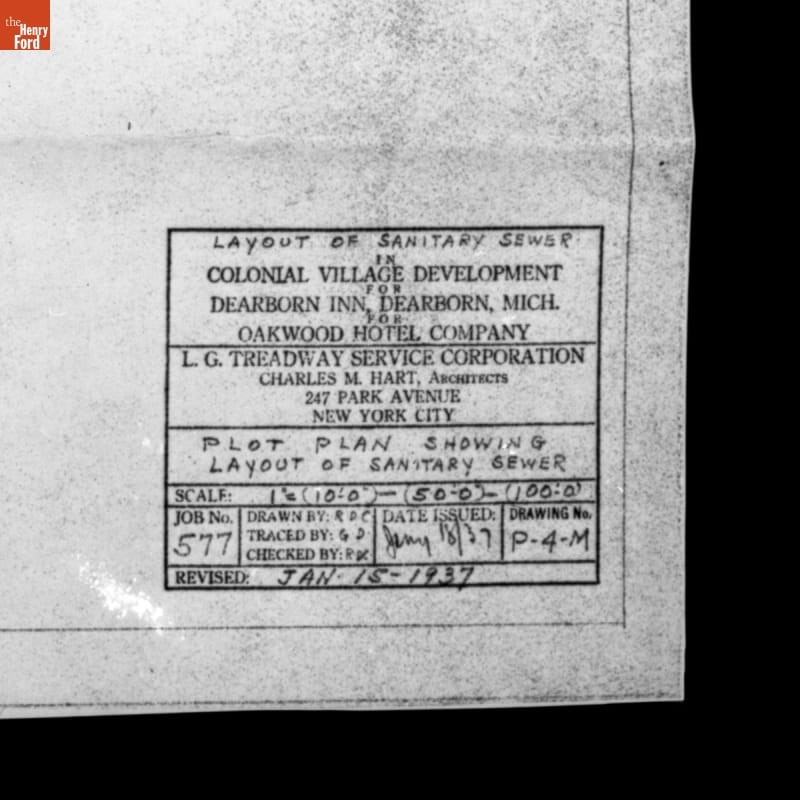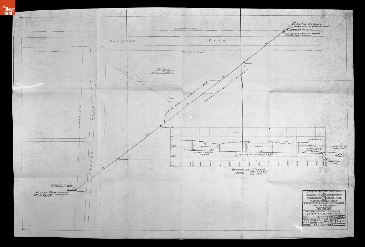 Plot Plan Showing Layout of Sanitary Sewer, Colonial Village Development for Dearborn Inn, January 1937