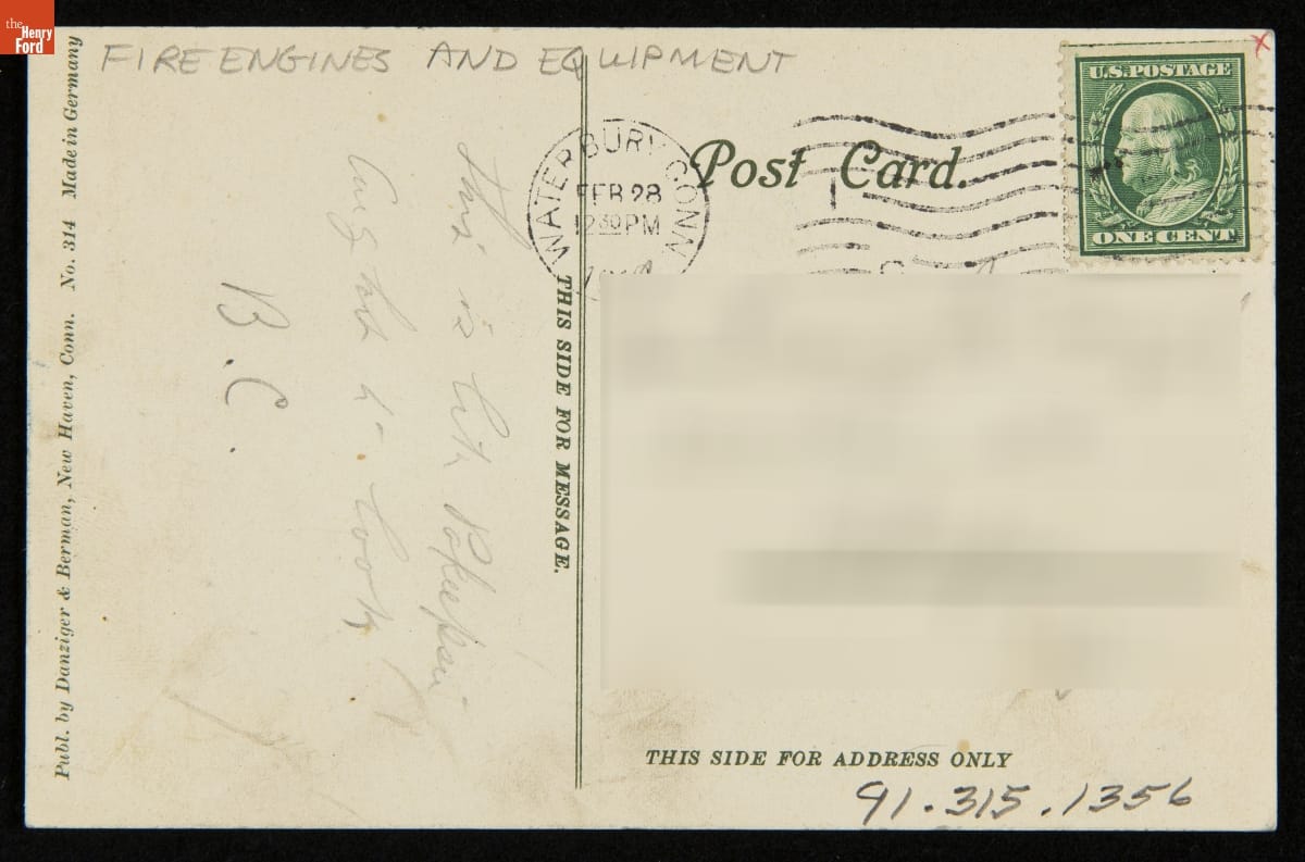Postcard, "Chief's Auto, Waterbury Fire Dept.," 1912