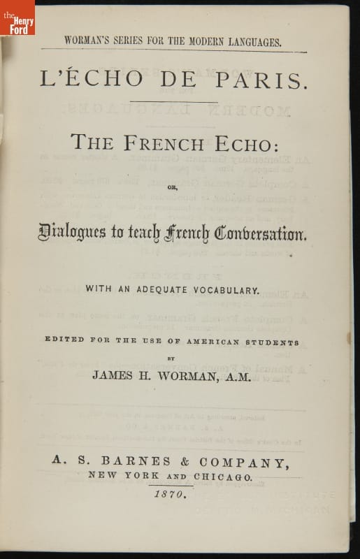 Book Used by Milton Wright, "French Echo," 1870