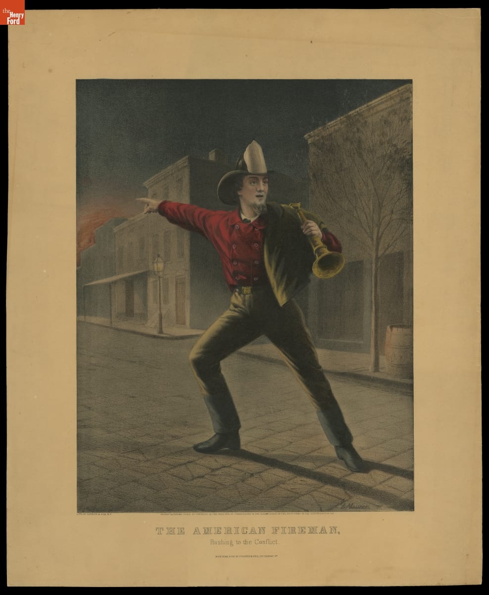 The firefighter became -- and remains -- a heroic symbol of bravery and devotion to duty. Artist Louis Maurer created a series of four prints that celebrated "The American Fireman" in 1858. Maurer's scenes were based on his personal observations of volunteer firefighters at work in New York City.