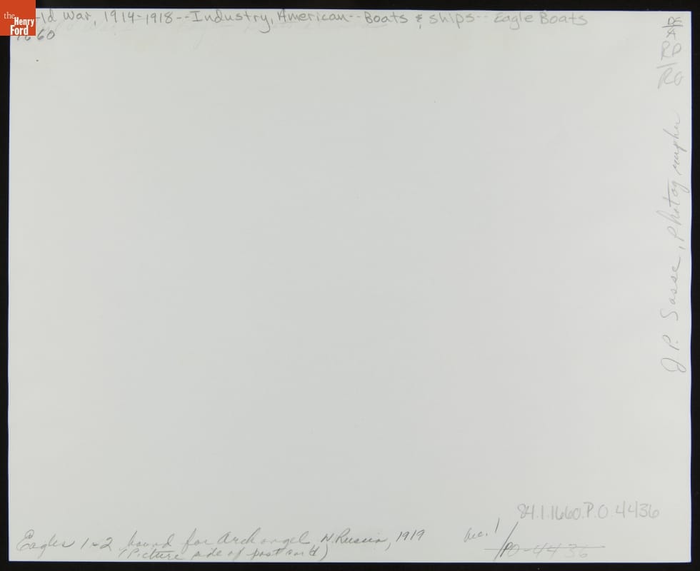 World War I ended before any of the 60 Ford-built Eagle submarine chasers could participate in the conflict. But three Eagle boats were sent to northern Russia in 1919 to aid the American Expeditionary Force in action against the Bolsheviks. The Americans landed at Arkhangelsk, near the Arctic Circle, and called themselves the "Polar Bears."