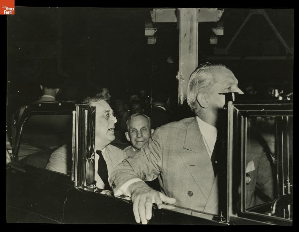 President Franklin Roosevelt, Henry Ford and Charles Sorensen Touring the Ford Willow Run Bomber Plant, 1942