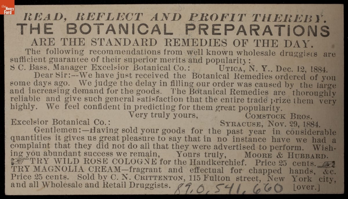 Trade Card for Excelsior Botanical Company, 1880-1884