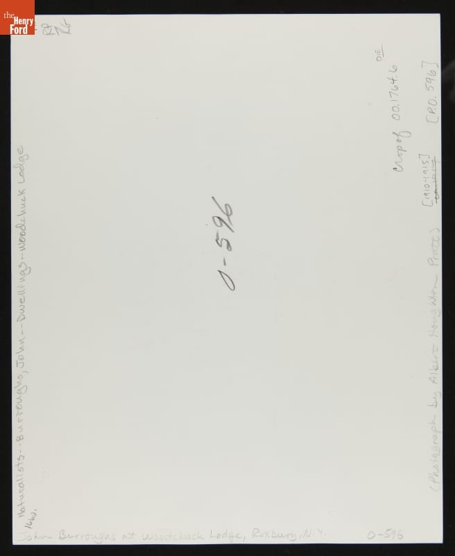 John Burroughs (1837-1921) was an internationally known naturalist and essayist who wrote about accessible and familiar landscapes. In 1913, with financial assistance from Henry Ford, Burroughs purchased the house built by his brother Curtis on land near Burroughs's birthplace in Roxbury, New York. Woodchuck Lodge, as Burroughs referred to it, became his summer retreat and its natural surroundings became the subject of his creative works.