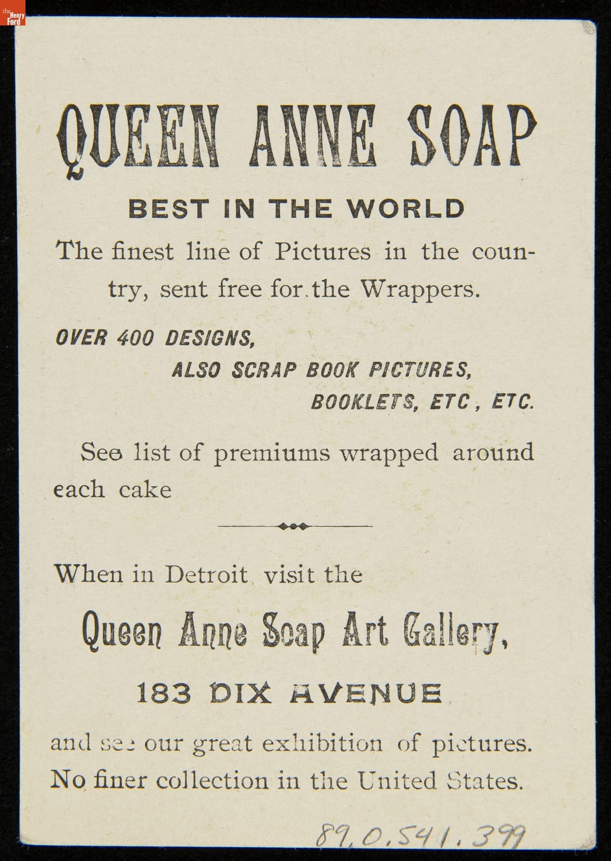 Trade Card for Queen Anne Soap, Detroit Soap Company, 1881-1900