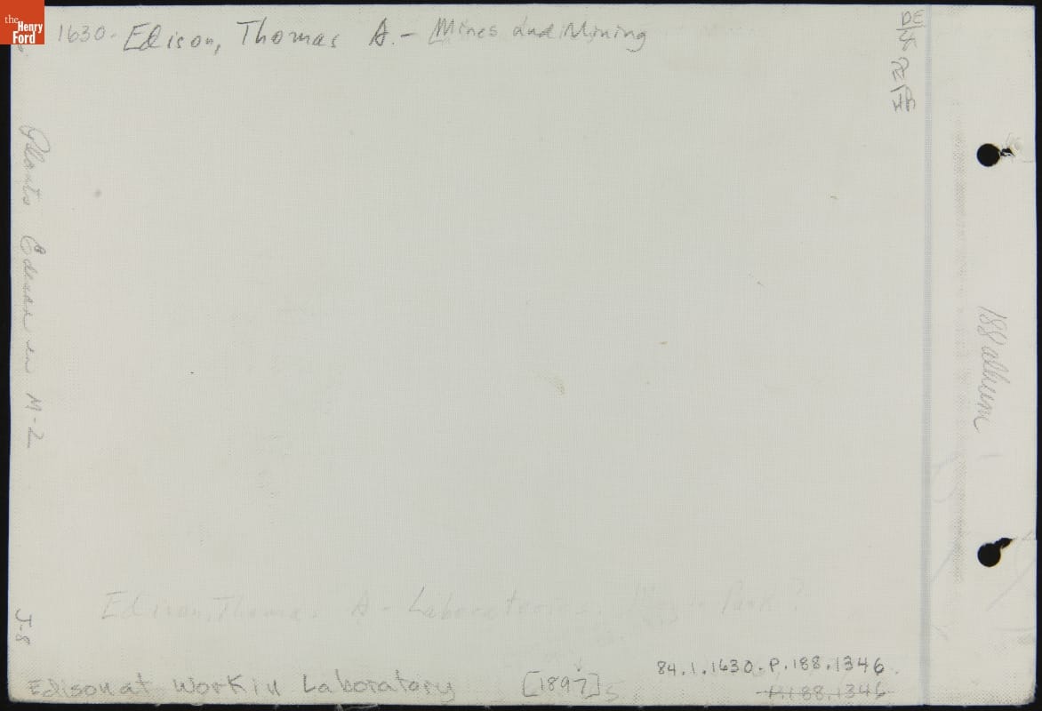 This photograph shows inventor Thomas Alva Edison at work in his West Orange, New Jersey, laboratory. Edison directed teams of research assistants here for nearly fifty years -- from 1887 until his death in 1931. More than half of Edison's 1,093 patents resulted from the collaborative work done in this complex, which became a model for modern research and development laboratories.