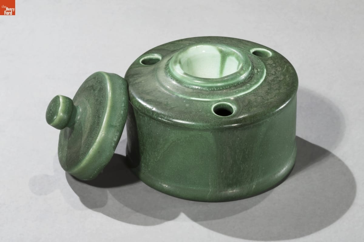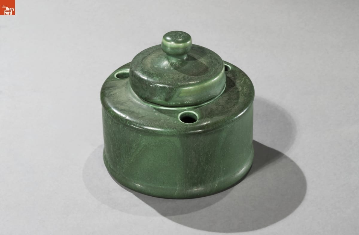 Cadman Robertson joined Hampshire Pottery in 1904 and began developing decorative household items covered with an attractive thick brown, red, blue, or green glaze. The Keene, New Hampshire, company continued to produce similar wares for a few years after Robertson's sudden death in 1914. The company was sold in 1917 and focused on making commercial China for restaurants and hotels. The factory closed in 1923.