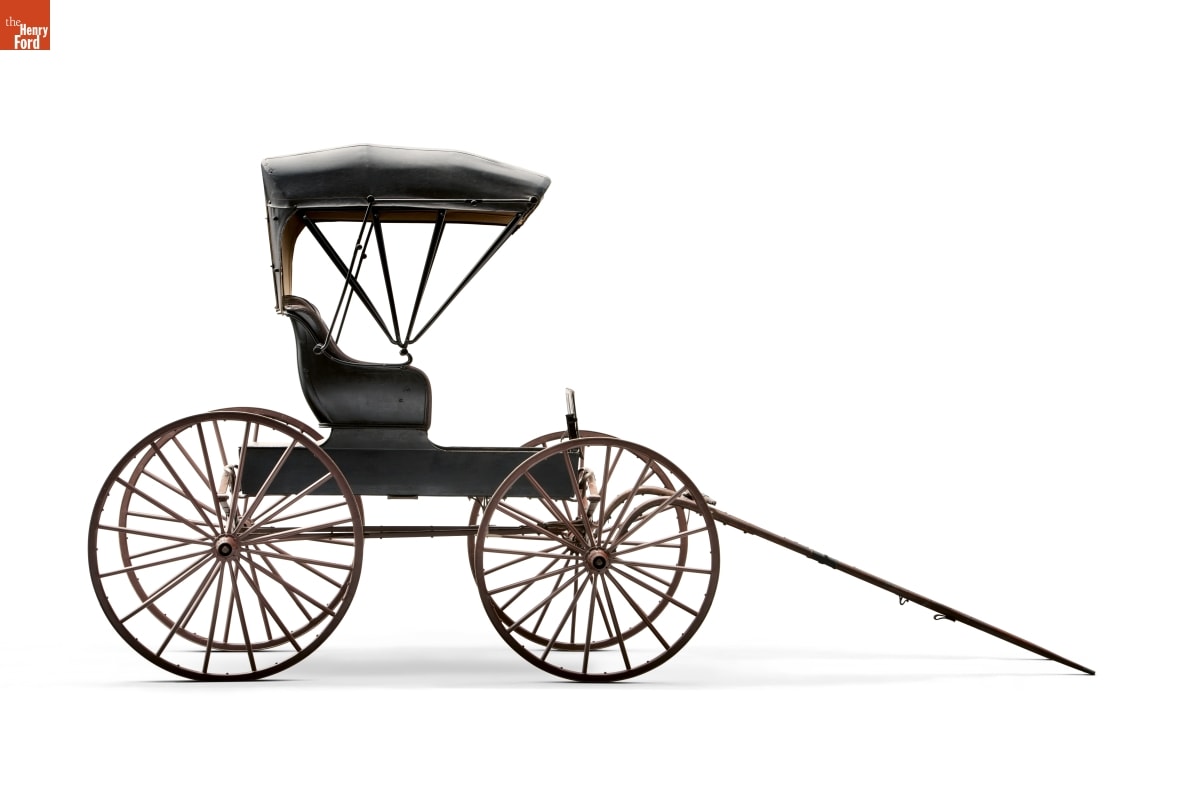 Affordable lightweight piano box buggies offered turn-of-the-20th-century Americans more freedom. The Noyes Carriage Company in Elkhart, Indiana built this horse-drawn buggy in the first decades of 1900s -- a period when automobile production began to expand. Both modes of transportation coexisted during this period. The company, whose business doubled between 1903 and 1910, likely found customers in rural areas and among the many commercial firms who used horse-drawn vehicles. This success would not continue however. As the century wore on motorized vehicles would rule the road. In 1914 automobile production finally surpassed buggy and carriage production and by the mid-1920s the Noyes Carriage Company was out of business.