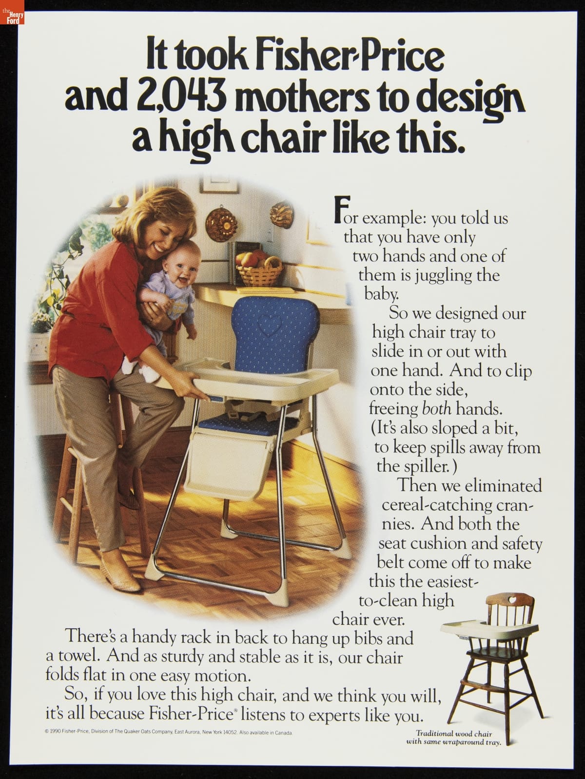 Fisher-Price Advertisement, "It Took Fisher-Price and 2,043 Mothers to Design a High Chair Like This," 1990