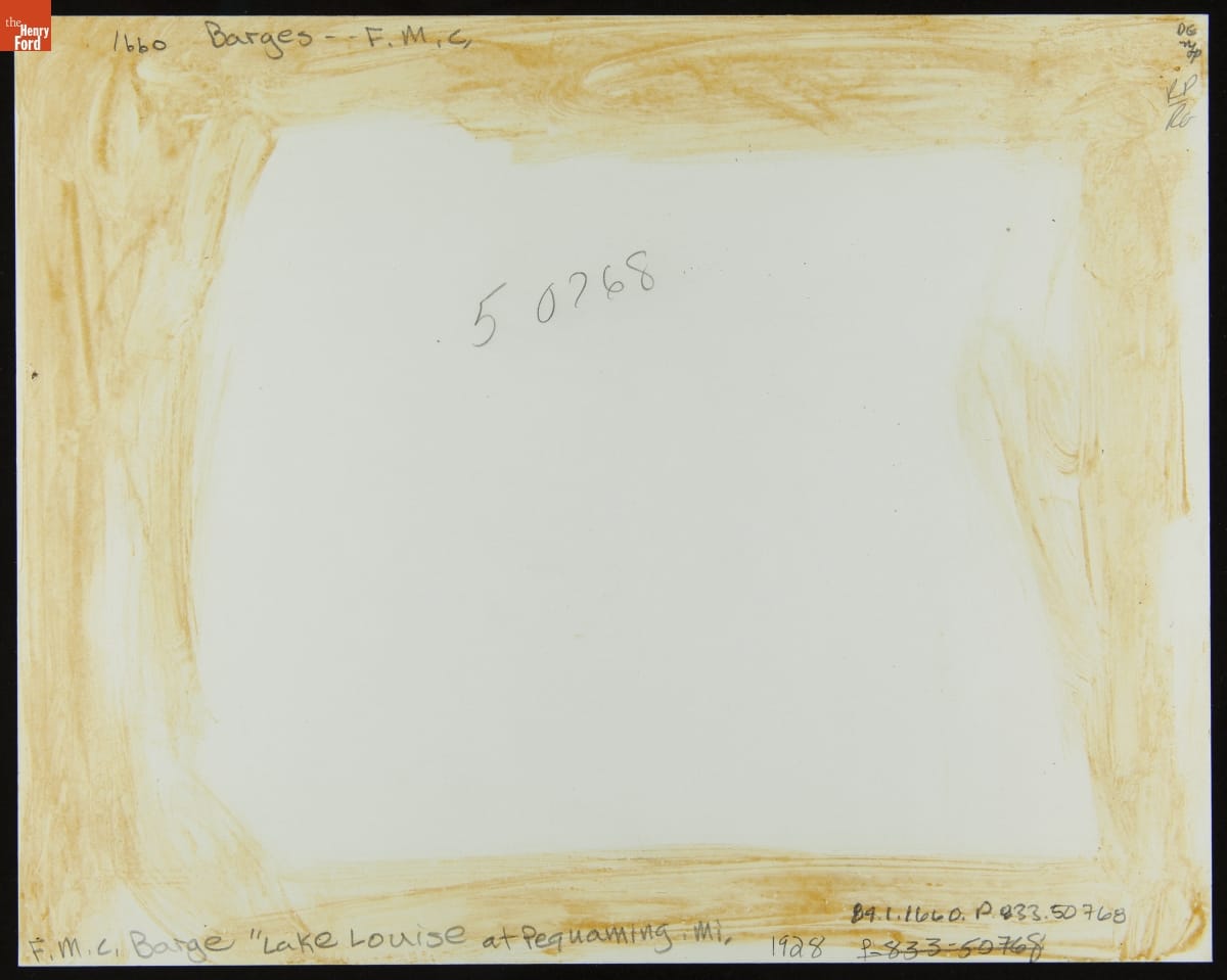Henry Ford purchased 199 surplus World War I merchant ships from the United States government in 1925. Most of these ships were scrapped and the materials were used at Ford's new automobile manufacturing complex on the Rouge River. But 13 were converted into barges, like the Lake Louise. These barges transported products and material as part of Ford's operation.
