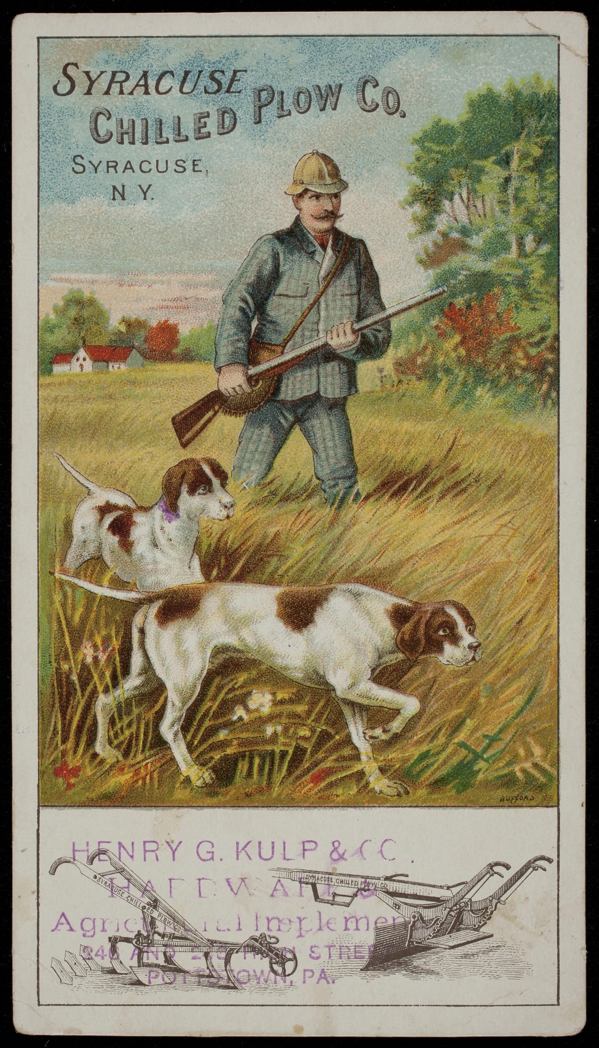 Product manufactured by Syracuse Chilled Plow Co. (Syracuse, New York). Sold by Henry G. Kulp & Co. (Pottstown, Pennsylvania). Lithography by J.H. Bufford & Co. (Boston, Massachusetts).
