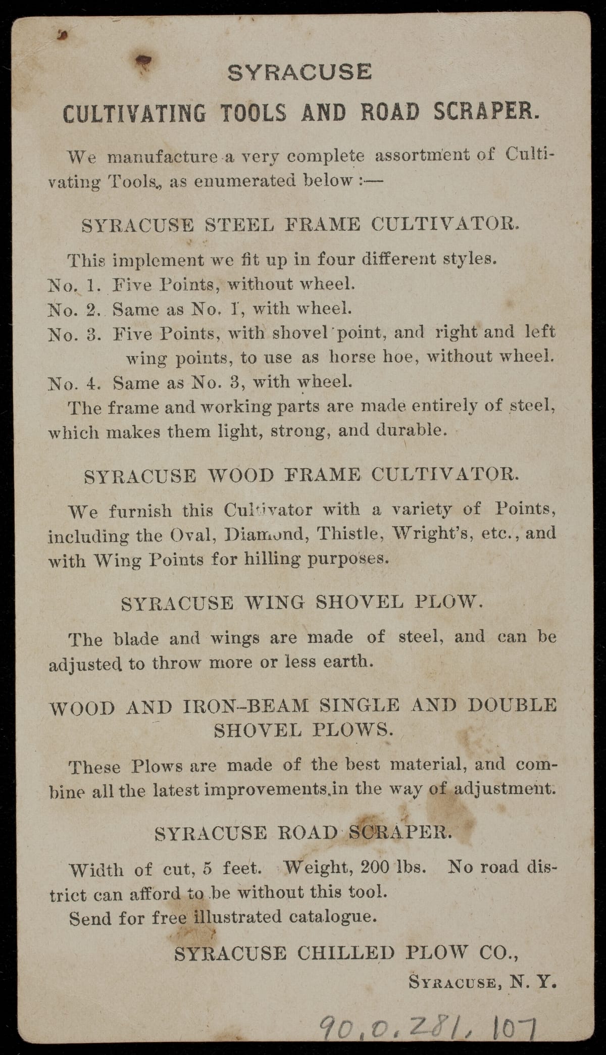 Trade Card for Cultivating Tools, Syracuse Chilled Plow Co., circa 1880