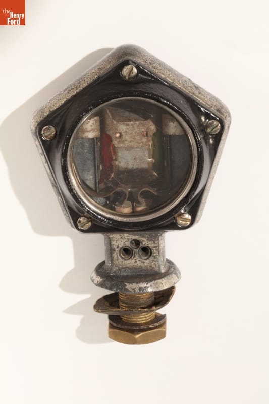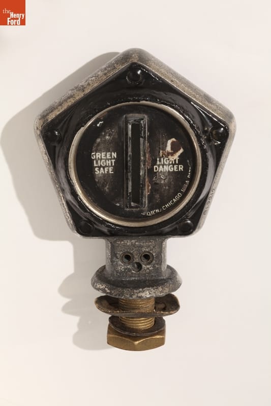 Automobiles often came without temperature gauges before the early 1930s, so enterprising manufacturers sold aftermarket motometers. Mounted on a car's radiator, these devices measured and displayed coolant water vapor temperature, notifying drivers if their automobiles were in danger of overheating. An unidentified company produced this motometer in Chicago, Illinois around 1925.