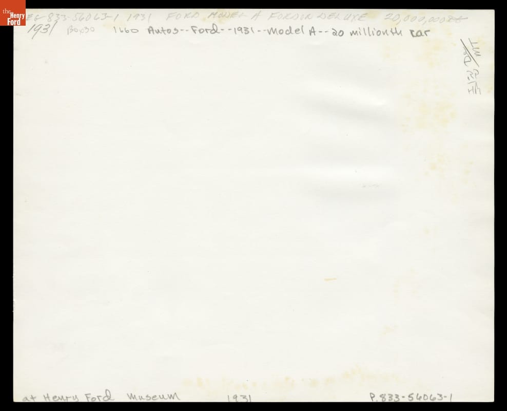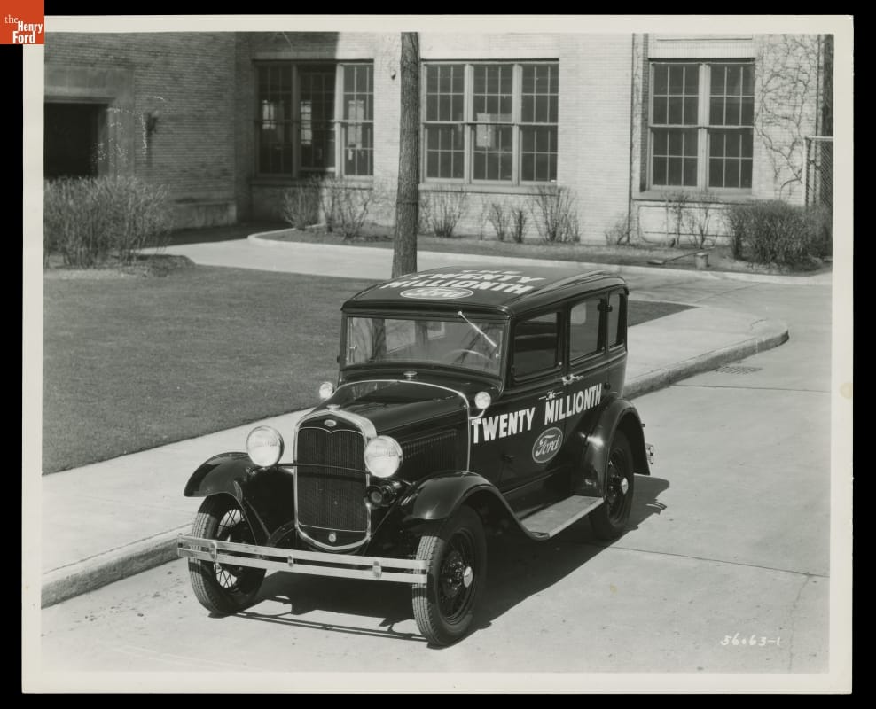 The Ford Motor Company produced its 20 millionth automobile -- a black Town Sedan -- in 1931. The car rolled off Ford's Rouge plant assembly line on April 14th, and it then embarked on a nationwide publicity tour.