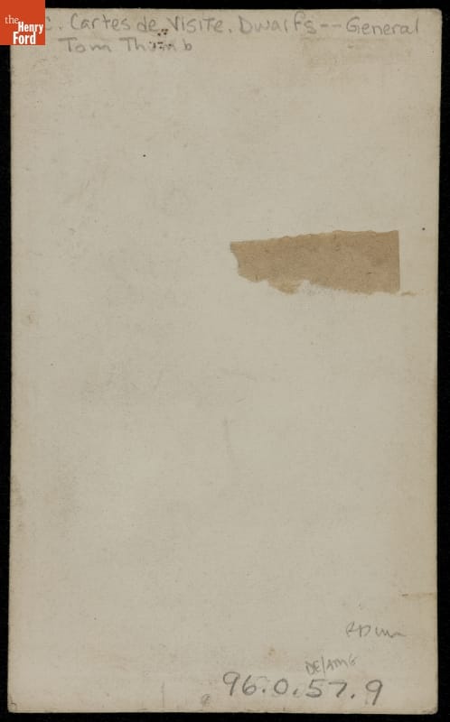 The 1863 marriage of actress Lavinia Warren to circus performer Charles Stratton--known as General Tom Thumb--was front-page news. Publishers distributed cartes-de-visite featuring the famous couple. Cartes-de-visite, small photographic prints on cardboard stock, remained popular from the Civil War in the 1860s through the 1880s. Americans commonly collected and exchanged them to commemorate family members or celebrities.