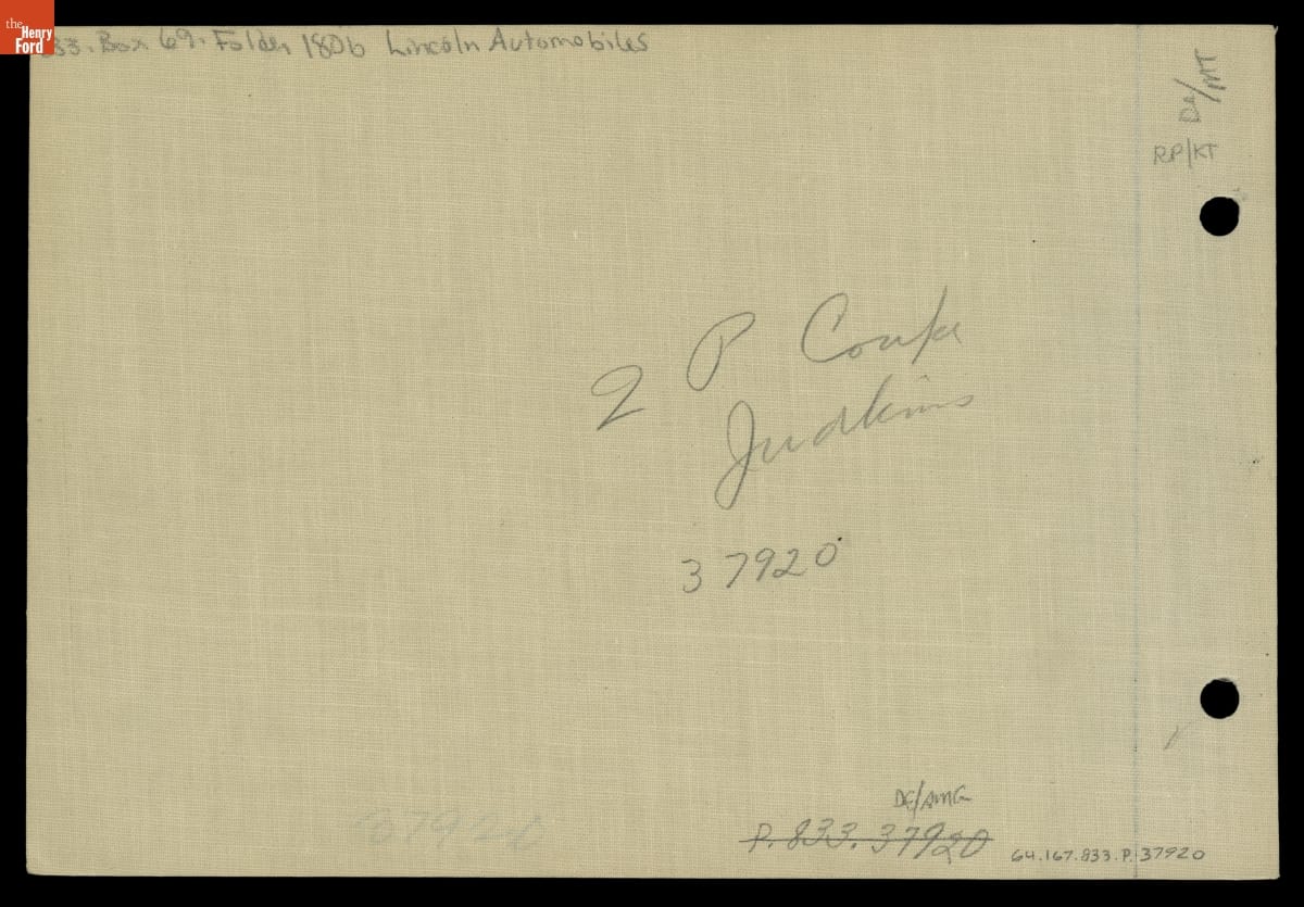 Lincoln Judkins Two-Passenger Coupe, June 1924