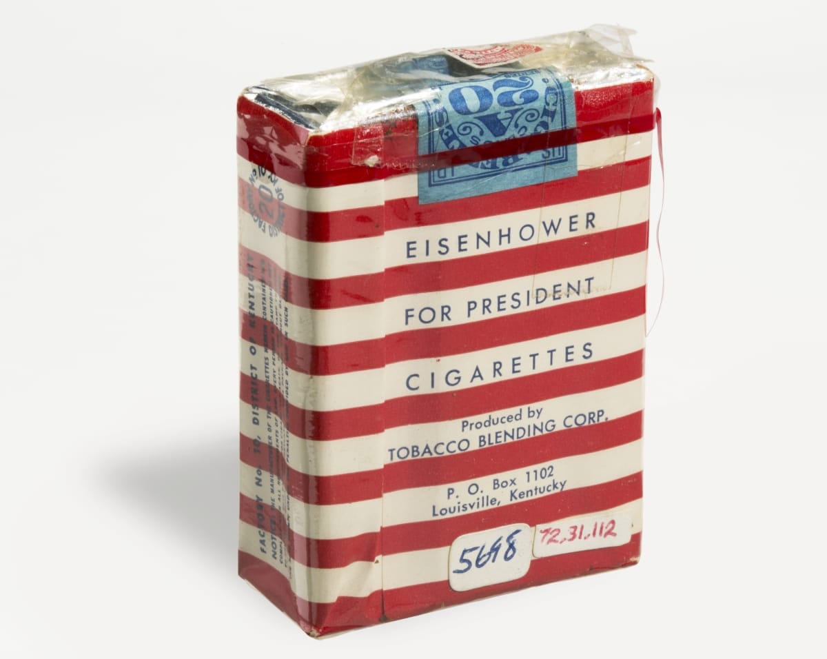 EISENHOWER / FOR PRESIDENT / CIGARETTES / PRODUCED BY / TOBACCO BLENDING CORP. / P.O. BOX 1102 / LOUISVILLE, KENTUCKY.