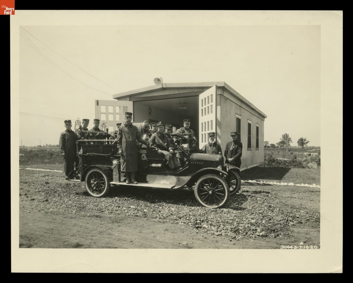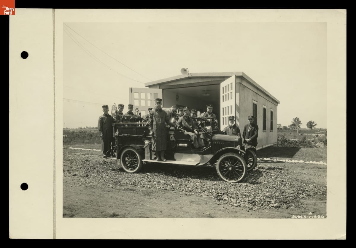 Firemen with a Ford Model TT Fire Truck at the Rouge Plant, July 16, 1920