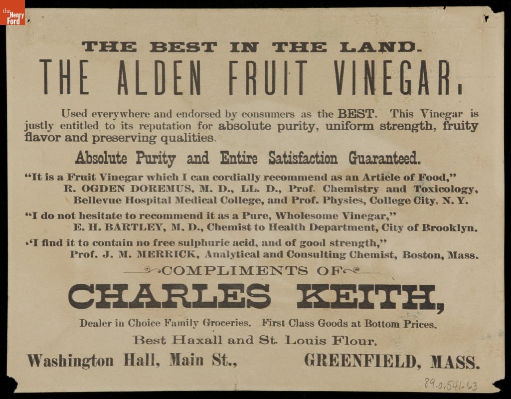 Trade Card for Alden Fruit Vinegar, 1880-1900
