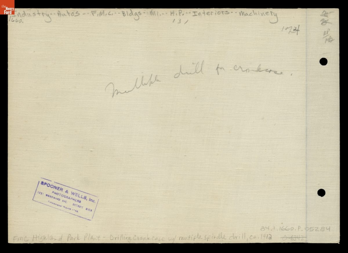 Multiple Spindle Drill for Crankcase Drilling at Ford Motor Company Highland Park Plant, circa 1910