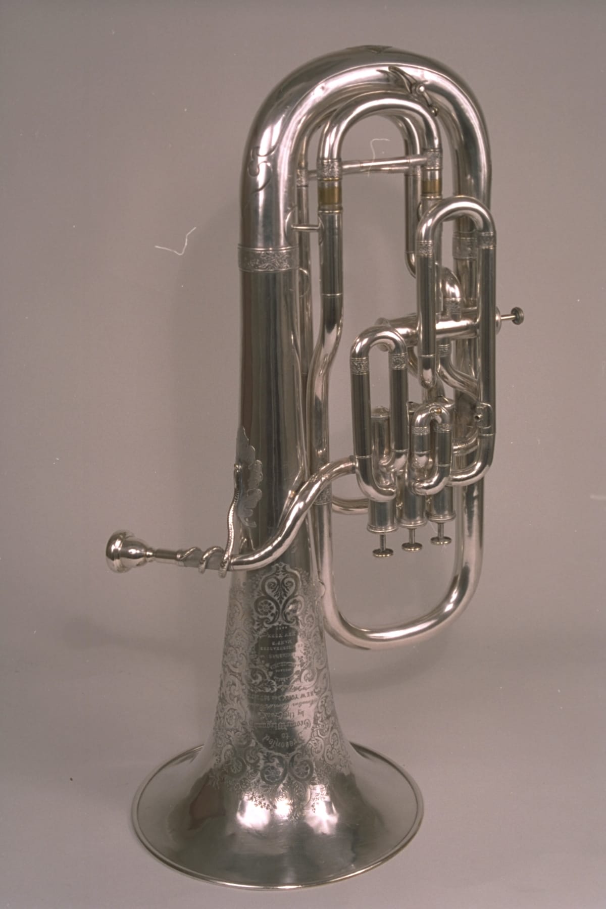 Baritone Horn, Presented to George Wiegand by the Crook's Amateur Cornet Band, 1877