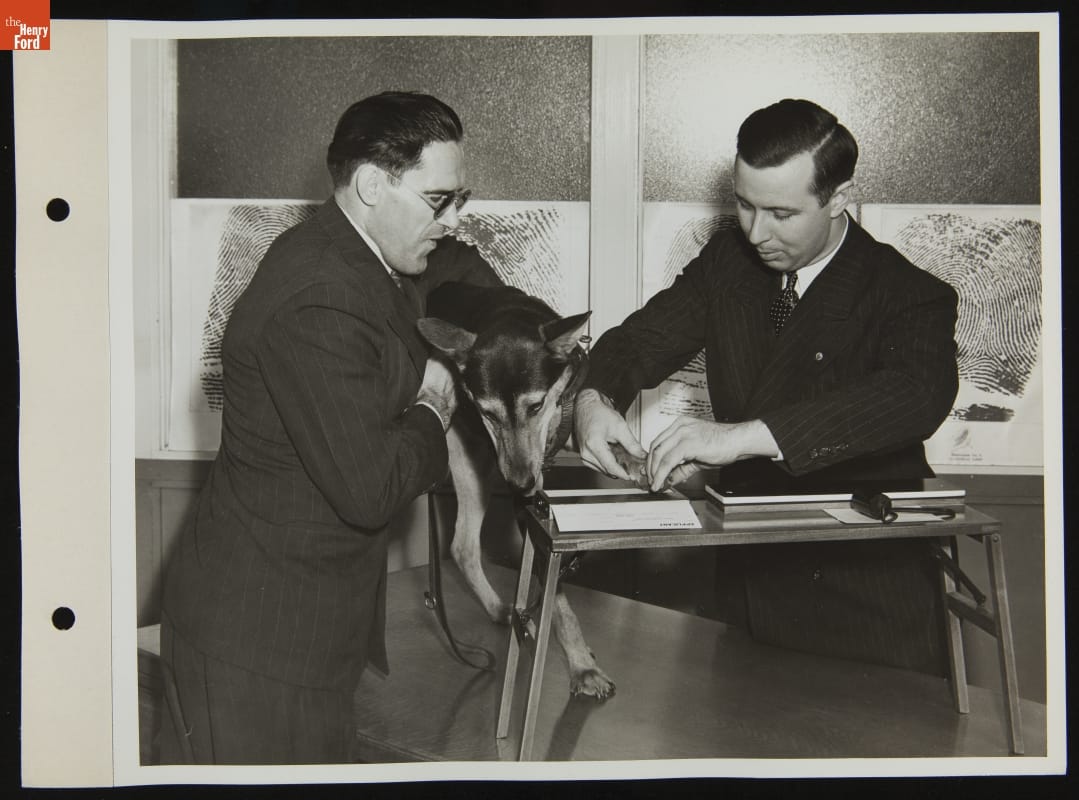 Ford Employee's Service Dog Being "Pawprinted" for Identification, October 1942