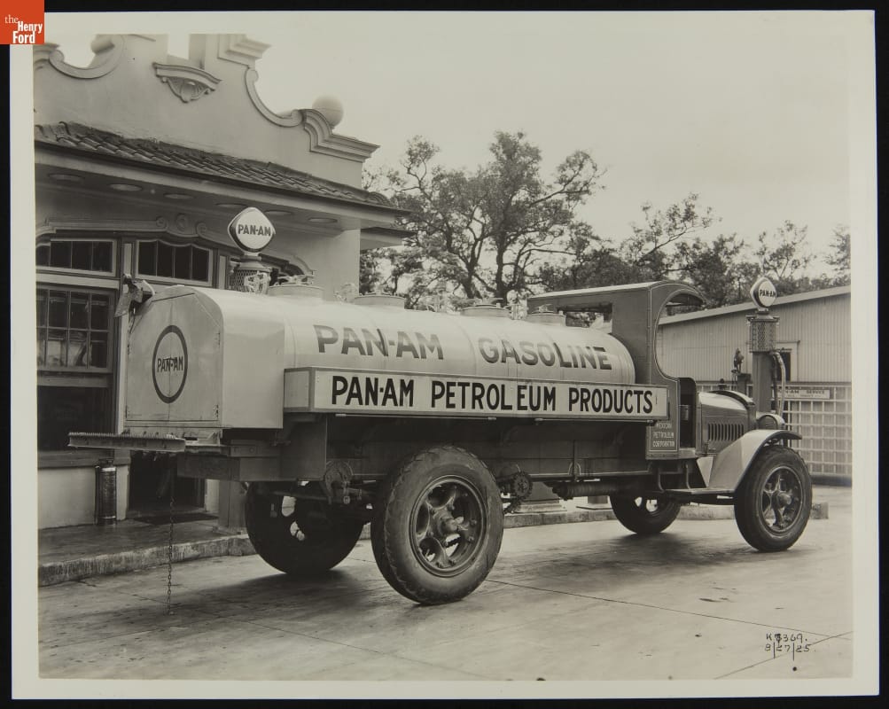 Mack Model AB Tank Truck at a Gas Station, August 1925