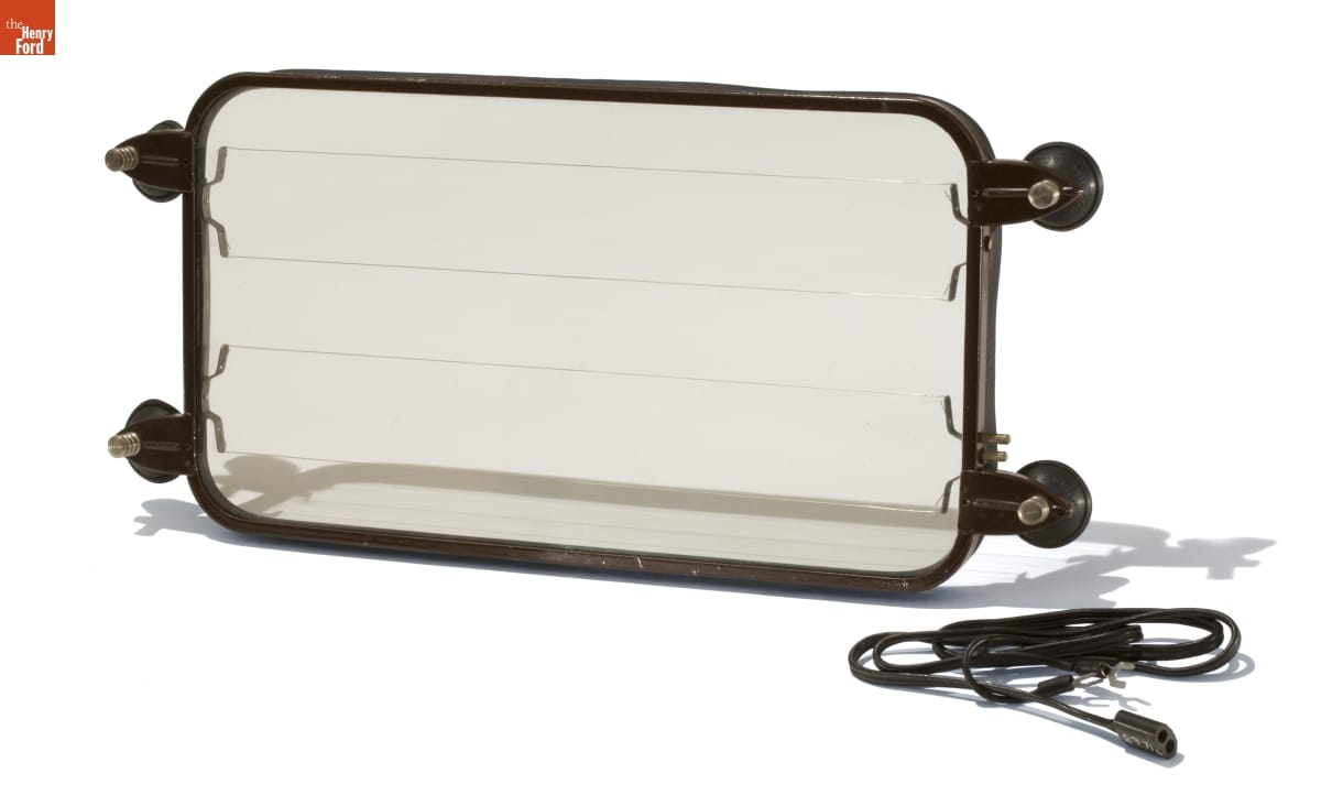 Aftermarket accessories allowed car owners to customize or improve their vehicles. This electric defroster attached to the inside of the front windshield and cleared ice, snow, and sleet from the driver's view.