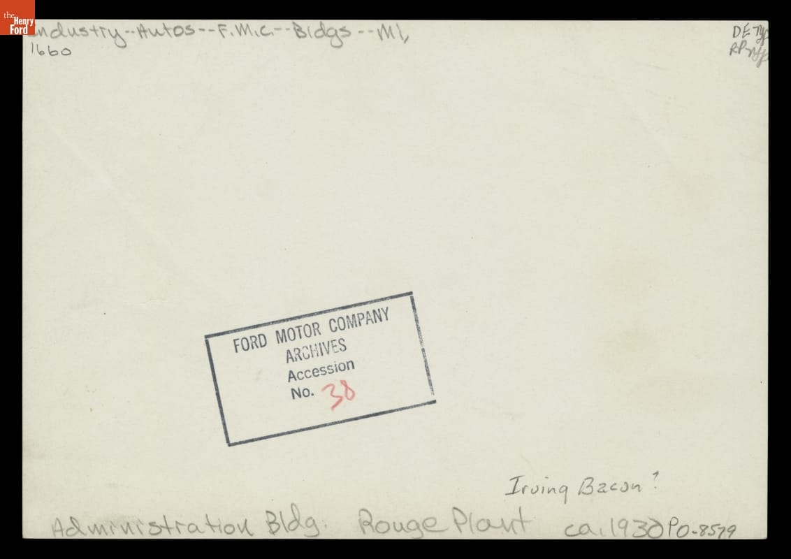 Artist Irving Bacon met Henry Ford in 1898 while working as an illustrator for Detroit newspapers. Ford appreciated Bacon's work. In 1915 after Bacon returned from studying art in Europe he joined the Photographic Department of Ford Motor Company. Over the next thirty years, Bacon illustrated articles for company publications, worked on films and other projects, created portraiture, and painted scenes depicting Ford's life.