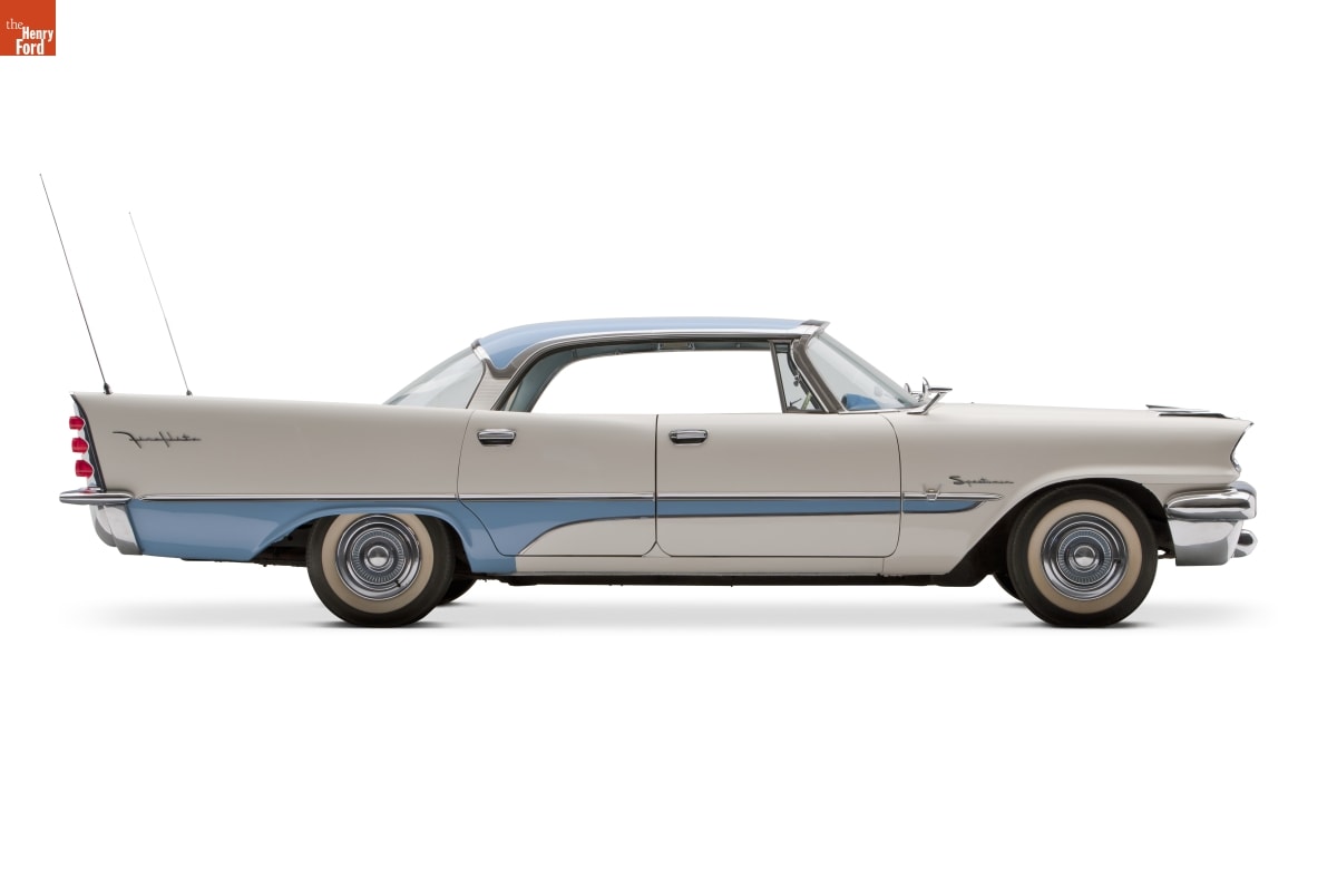 Made by Chrysler Corporation in Detroit, Michigan; designed by Virgil M. Exner.