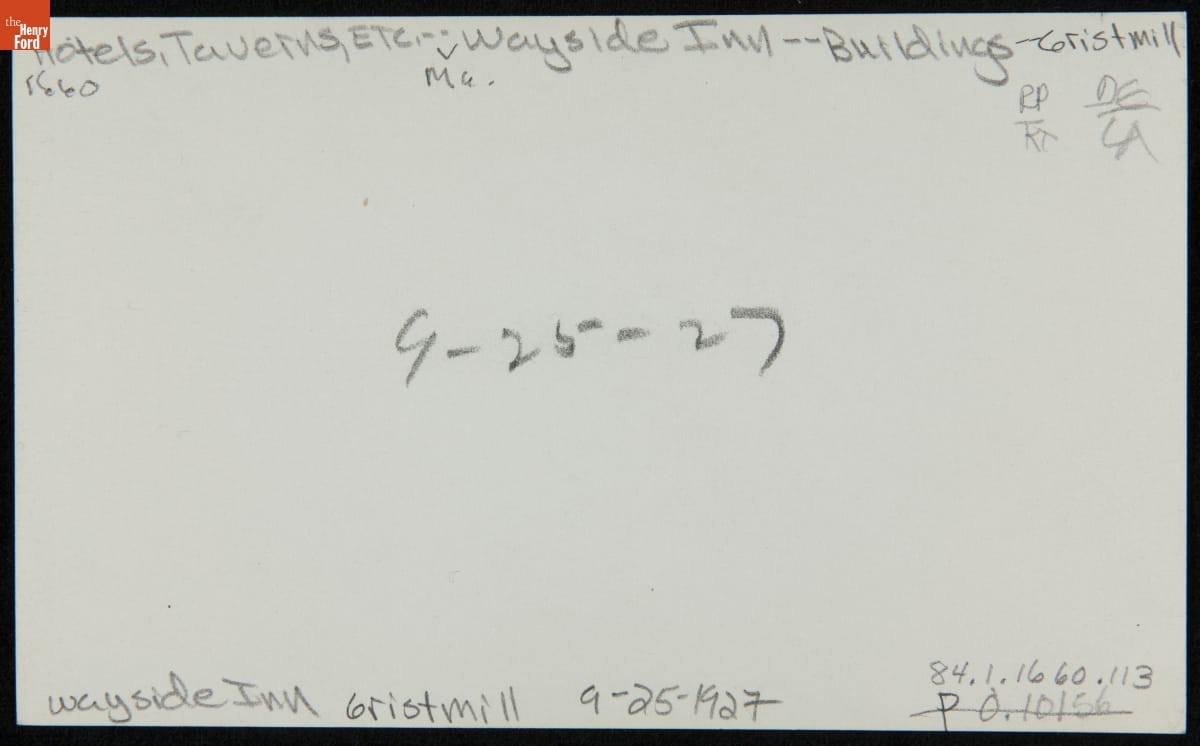 Henry Ford purchased the Wayside Inn, the setting for the poems in Henry Wadsworth Longfellow's Tales of a Wayside Inn, in 1923. Over six years, Ford spent more than $2 million restoring the inn and several adjacent buildings, including this gristmill. In retrospect, the project was something of a dry run for Ford's Greenfield Village complex a few years later.