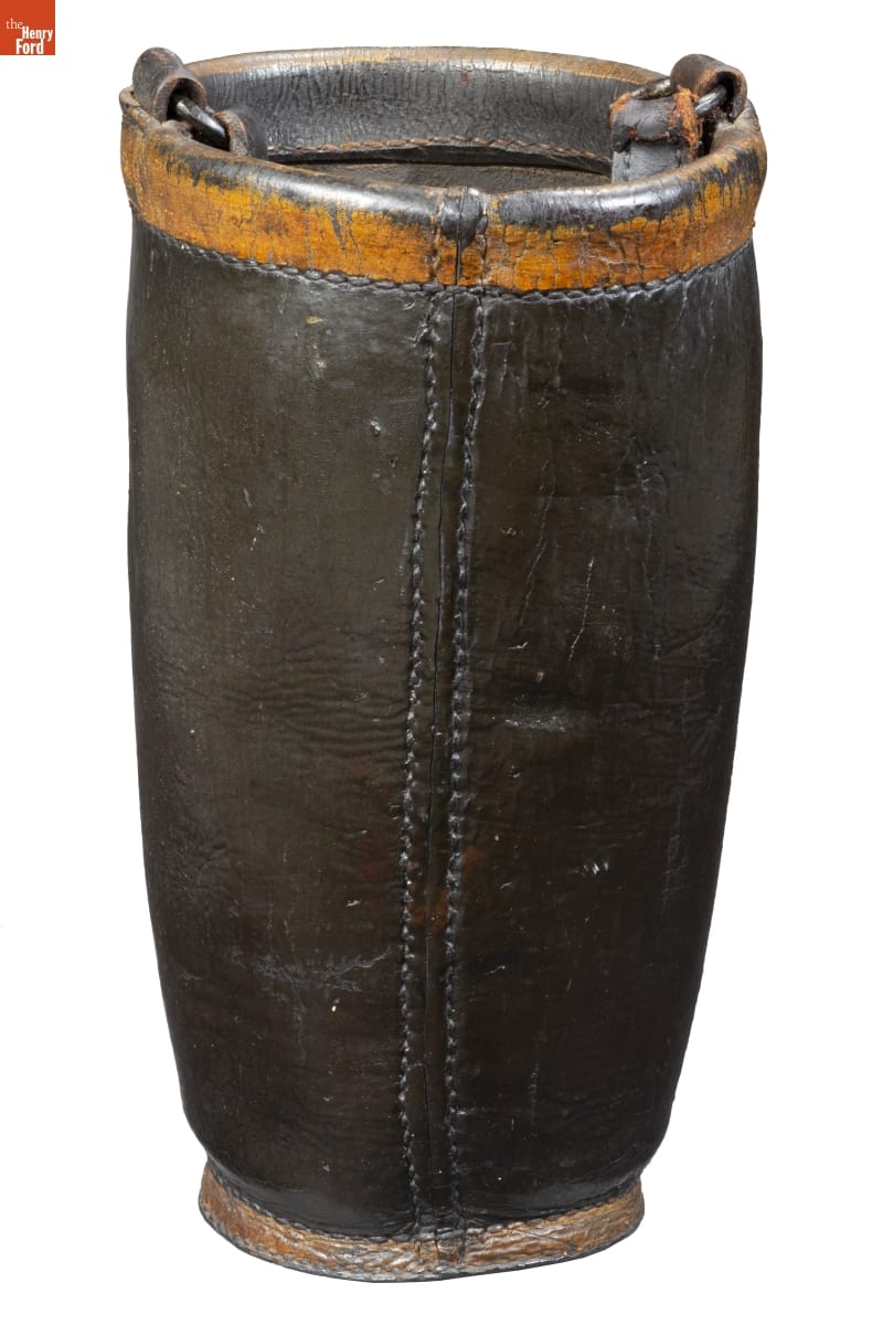 Many home and business owners in colonial and early America kept leather fire buckets in case of emergency. When a fire broke out in the community, owners tossed their buckets into the street, where firefighters and local citizens used them to carry water to put out the fire. Buckets decorated with names, initials and numbers helped owners identify their buckets after the fire had been extinguished.