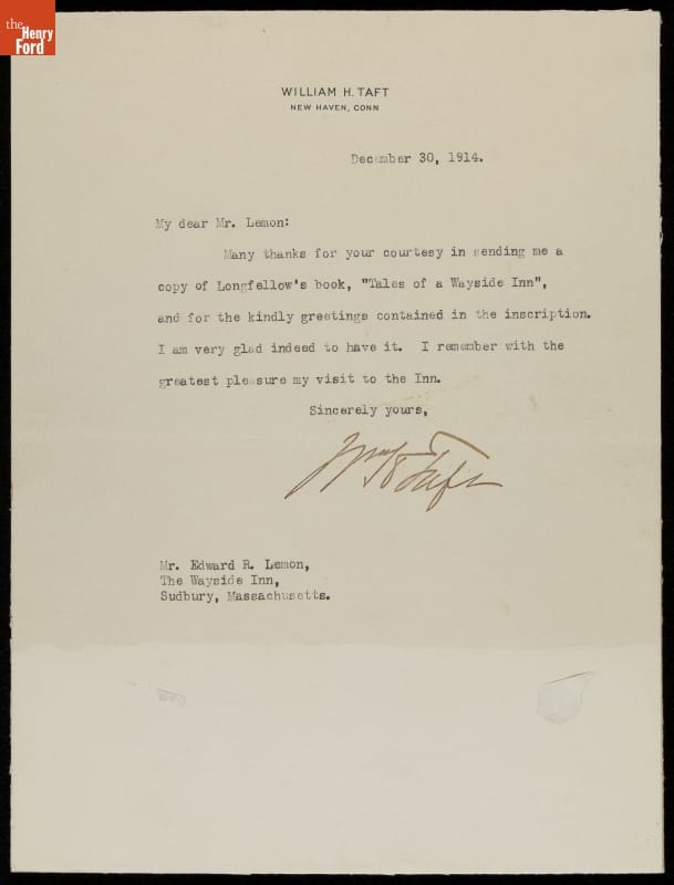 Letter from William Howard Taft to Edward R. Lemon, 1914