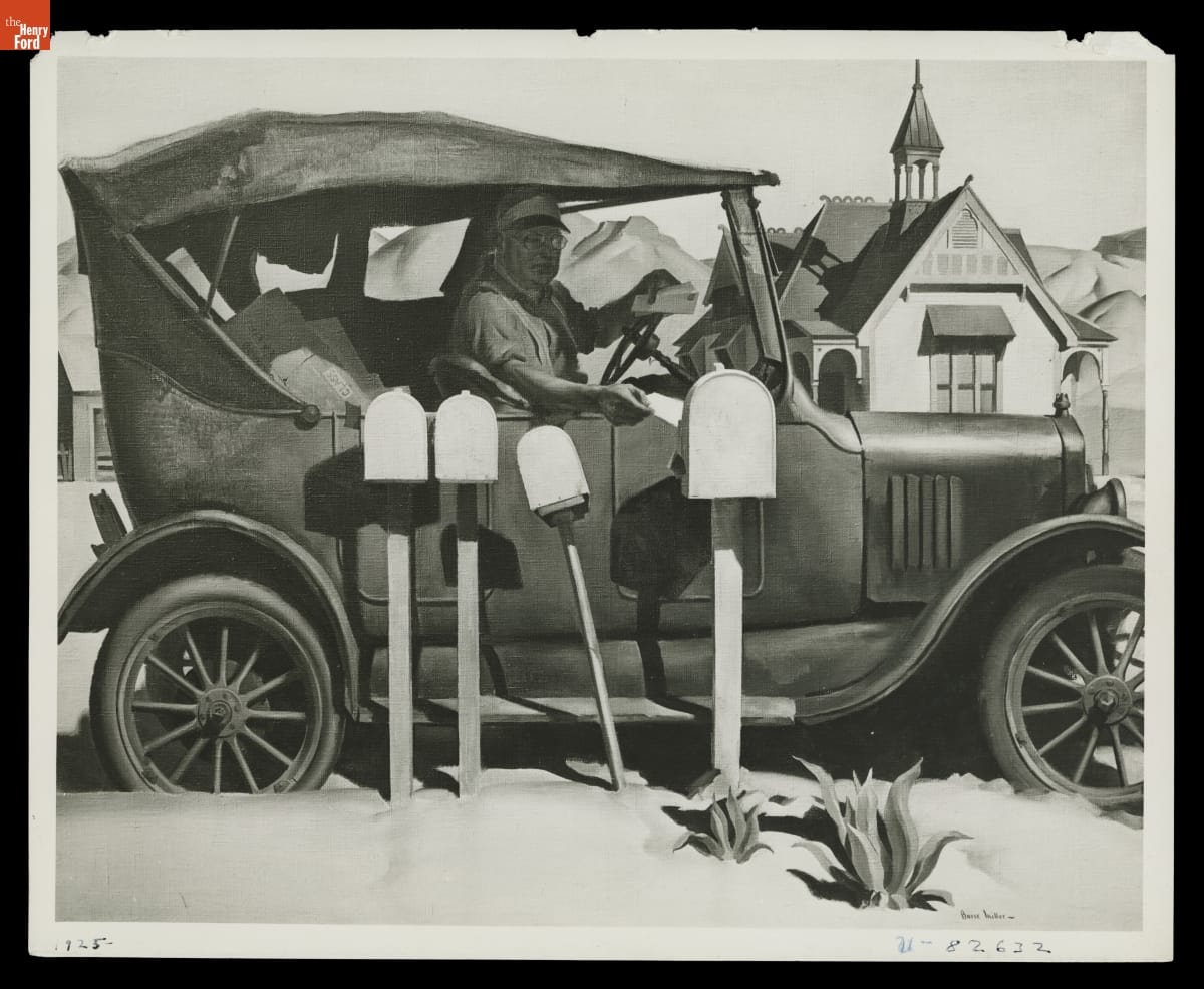 Mail Delivery Using a Ford Model T Touring Car, Painting by Barse Miller, 1925