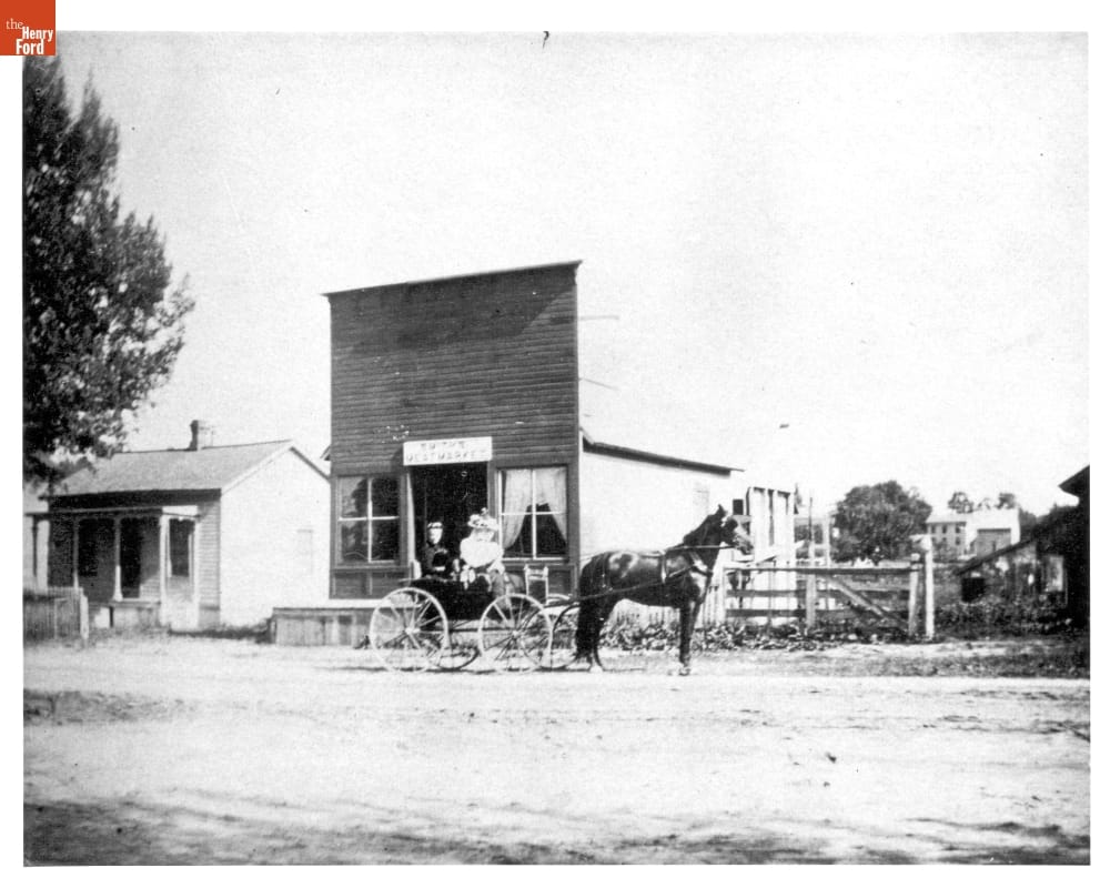 Before cars, America relied on horses and horse-drawn vehicles to move people, freight, money, and information to places railroads and waterways didn't go. This photograph, taken around 1890 in the then-small village of Dearborn, Michigan, shows female passengers in a horse-drawn wagon.