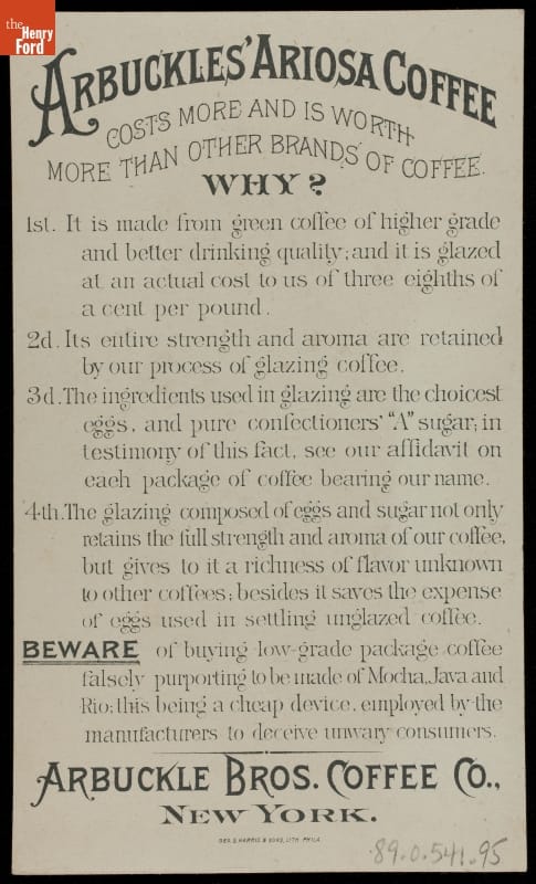 Trade Card for Ariosa Coffee, Arbuckle Bros., 1880-1900