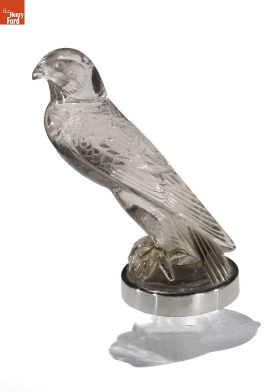 Rene Lalique created some of the most striking automobile mascots or hood ornaments. Lalique's elegant, molded-glass models enhanced the front of any luxury vehicle. The mascots could also be lit from below making them all the more impressive. These decorative mascots became a symbol of the car owner's wealth, status, and good taste.
