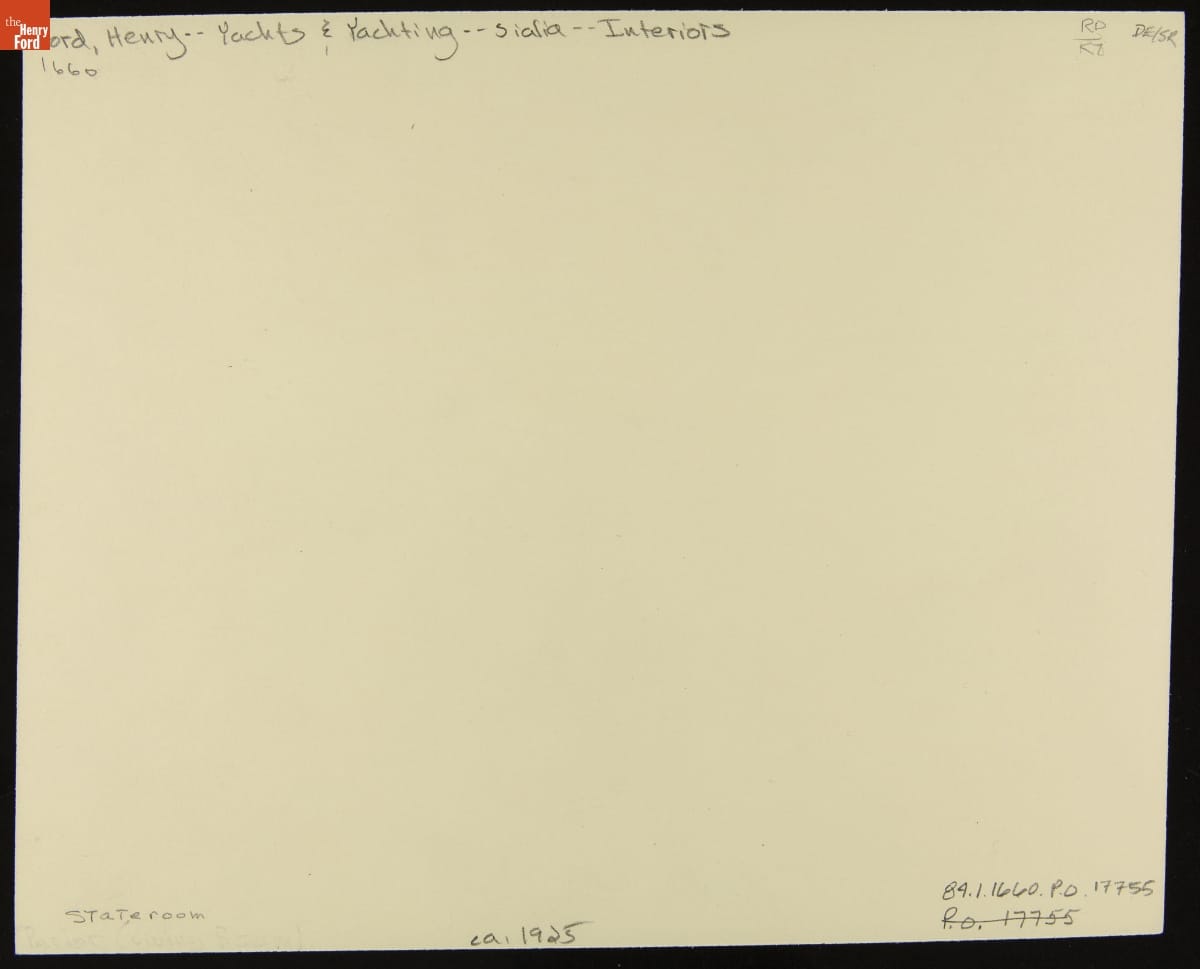 Stateroom on Henry Ford's Personal Yacht "Sialia," circa 1925