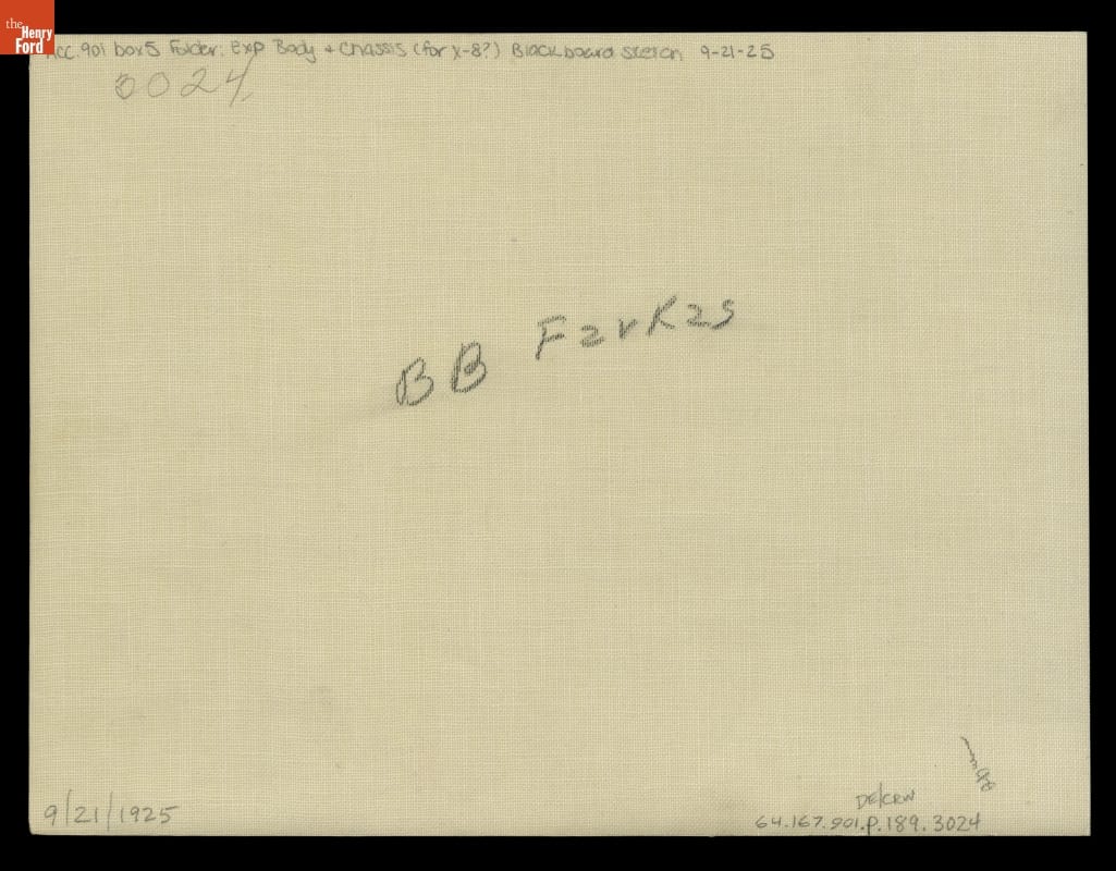 Blackboard Drawing of Proposed Ford Automobile, September 1925