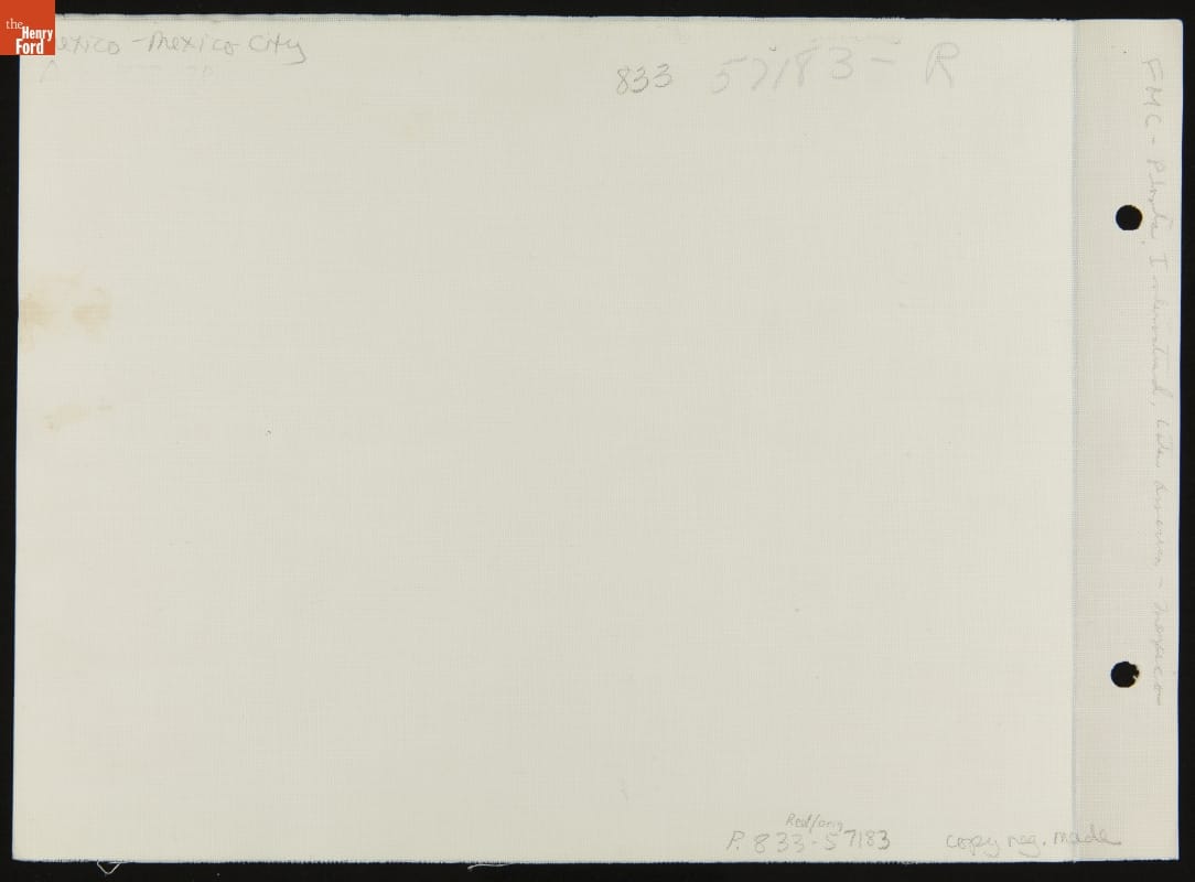 Guillermo Kahlo, father of artist Frida Kahlo, was one of the foremost architectural photographers in Mexico during the early 1900s. In 1932, Kahlo's studio documented the Ford Mexico City assembly plant. This visual record was created the same year Kahlo's son-in-law Diego Rivera began the Detroit Industry murals -- the monumental frescoes at the Detroit Institute of Arts funded by Edsel Ford.